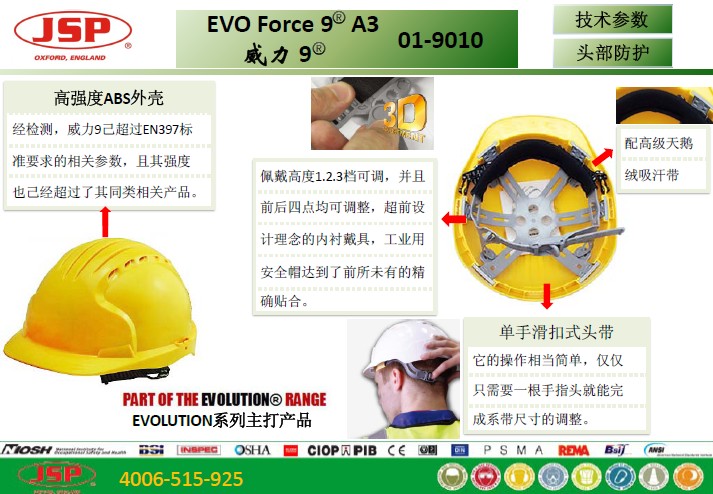 即使是完全倒置的(de)情況下,JSP也保(bao)證(zheng)了頭盔(kui)系于頭部,讓您在任何作(zuo)業(ye)狀況下都能安心(xin)操作(zuo)。一觸式(shi)滑扣設(she)計,只需(xu)一只手就能完成簡單的(de)調節(jie)。